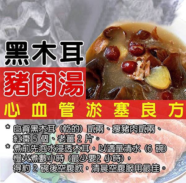* 煮前先泡水浸透木耳,以適量清水 (6 碗) 慢火煮數小時 (最少要2 小時),得約 2 碗後空腹飲,清晨空腹服用最佳。