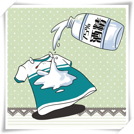 首先把酒精均勻地灑在衣服的筆印上,酒精要選用濃度不小於75%的醫藥用酒精。要記得把倒了酒精的這一面衣服向上放,不要接觸到衣服的其他它面,否則筆印顏色可能會染到衣服的其他部分。