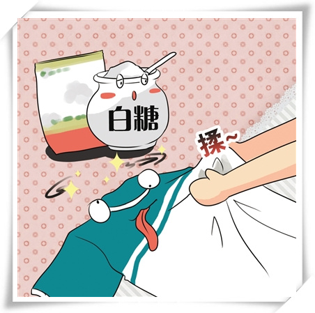 辦法一:首先把沾上污漬的地方用水浸濕,然後再撒上一勺白糖,用手揉搓。我們可以看到一部分醬油跡已經沾到了白糖上,然後用水清洗,可除去漬。