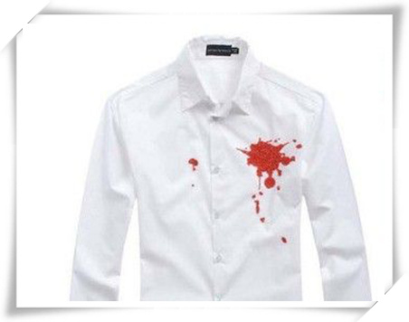 剛沾染上時,應立即用冷水或淡鹽水洗(禁用熱水,因血內含蛋白質,遇熱會凝固,不易溶化),再用肥皂或10%的碘化鉀溶液清洗;