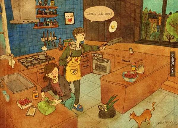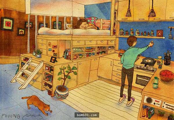 韓國插畫家「Puuung」用畫筆記錄下了自己與愛人的生活點滴,創作出這些俱有價值的插畫。