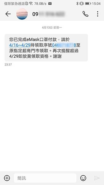 完成繳費後 會發送簡訊通知,可至門市領取的日期及序號
