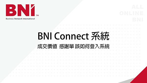 BNI Connect 系統 成交價值 登入